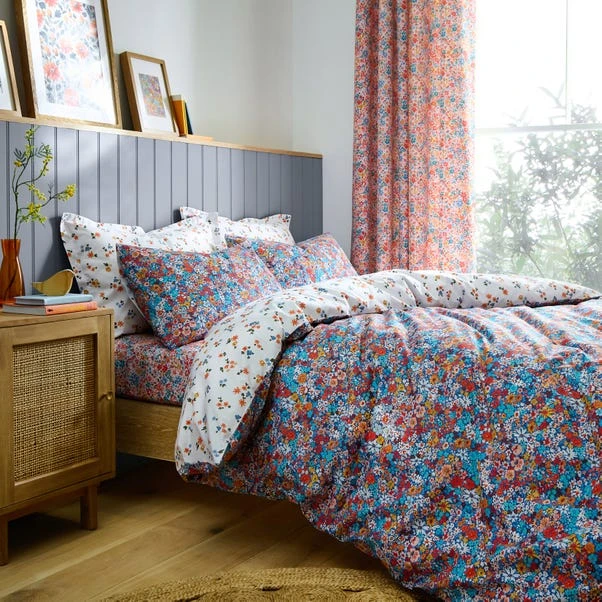 Transform your bedroom into a blooming oasis with this statement fitted sheet, where the playful charm of ditsy florals adds a touch of timeless elegance to your decor. Crafted from easy-care polycotton, this fitted sheet ensures convenience without compromising on style. With a fitted sheet depth of 32cm, it offers a snug fit for your mattress. Available in four sizes it provides versatility to suit various bed sizes. Complete the look with coordinating bedding and curtains, creating a cohesive and inviting atmosphere in your sleep space.