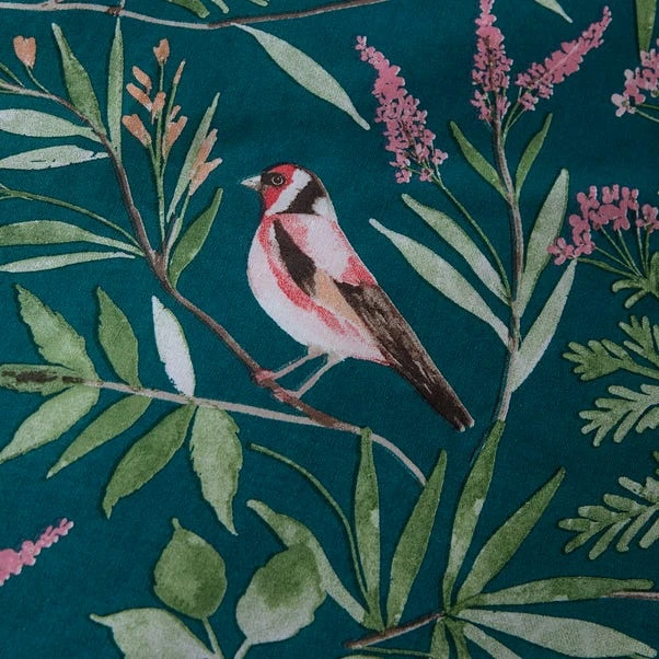 Wrens, Finches and other garden birds flutter delicately across this beautifully hand drawn, floral bedding set that also features an array of garden foliage. The reverse of the bedding is a simple print adding a touch of class.