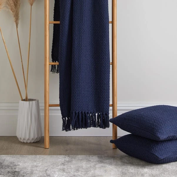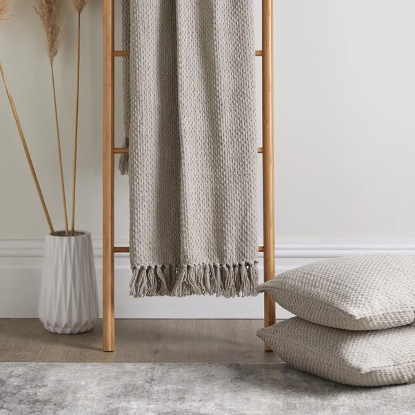 This intriguing basket weaved design throw creates compelling visual textures that make a splash in any contemporary bedrooms. Neutral tones work well in a variety of settings. A blend of recycled polyester yarn and sustainable cotton is the perfect blend for those of us who love our world as much as we love our homes. So why not cosy up on the soft with the Hayden throw?