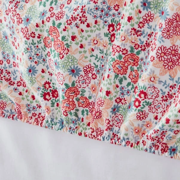 Enhance your bedroom decor with this delicate floral Fitted Sheet. The charming floral design adds a touch of elegance and whimsy, perfectly complemented by soothing colour tones. Crafted from 100% brushed cotton, this sheet provides a soft and cosy feel, ensuring a comfortable night’s sleep. The elastic fitting ensures a snug and secure fit on your mattress. Machine washable for easy care, this fitted sheet combines beauty and practicality for a delightful addition to your bedding collection.