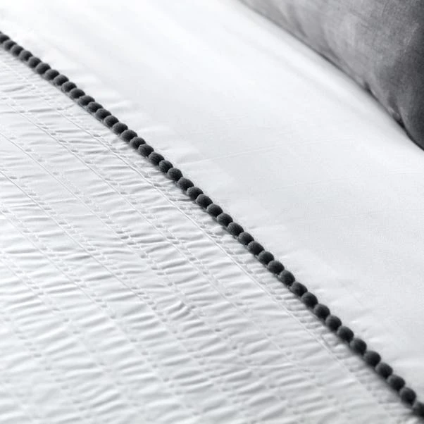 Create your calm space with the white Pom Pom duvet cover and pillowcase set, decorated with a subtle grey pom pom detailing for a pop of funk! This bedding set is finished with a popper closure to prevent the bedding becoming undone and comes complete with matching pom pom pillowcases. It’s machine washable for quick and easy bedding refreshes. Available in a range of colourways and bedding sizes to suit an array of bedroom decors and bed sizes.