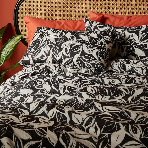 Inject artistry into your bedroom with the Sketched Leaf Reversible Cotton Duvet Cover & Pillowcase Set. The soft, modern leaf design in a stylish two-tone palette elevates any décor. Made from 100% cotton, this breathable, reversible set is ideal for year-round comfort. Available in four sizes, it’s a simple yet sophisticated choice for your bedroom.