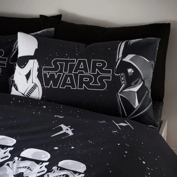 Is your child a Star Wars Darth Vader fan? Well this Darth Vader duvet cover and pillowcase set might be the perfect bedding set for them! Let them relax on their dark side with this reversible bedding, making this bedding set interchangeable for quick style whenever they desire. Crafted from a soft blend of polyester and cotton material, this set is easy to care for and is fully machine washable. The duvet cover set has been finished with a secure button closure which helps secure the cover around the duvet whilst in use and includes a matching reversible pillowcase(s) for a complete look.